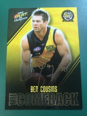 2009 AFL Select Champions Ben Cousins Richmond COMEBACK Album Card 495. The 42-year-old West Coast champion revealed his comeback plans to The West Australian on Sunday five months after he walked free from jail after a seven-month prison term. 4182021 Fallen footy legend and recovering ice addict Ben Cousins looks healthy and happy as hes spotted for the first time in months posing with fans at the AFL - as he reveals shock comeback plans.
